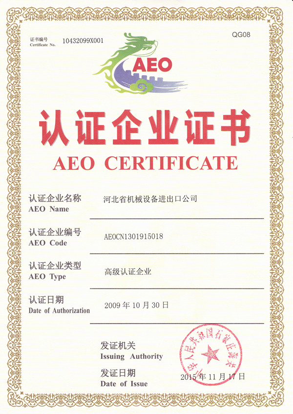 河北设备获评AEO高级认证企业